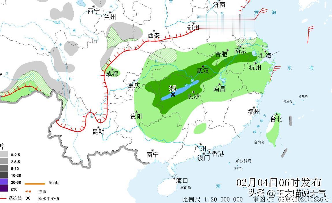 到了明天,也就是到了2月5日,我国的南方地区出现了新一轮的降雨过程,湖南、湖北、安徽、江苏、浙江、江西、上海等地,都会出现大范围的降雨过程,其中在湖北南部、湖南北部等地,还会出现大雨天气。