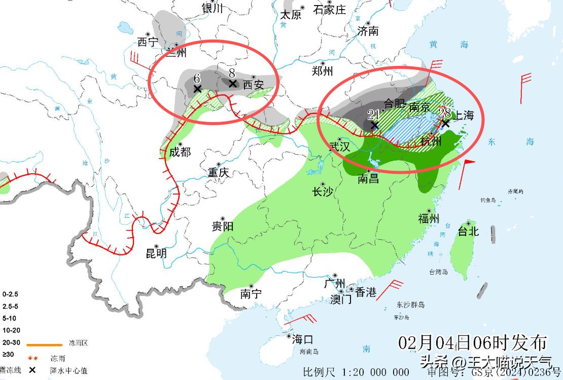 到了2月6日,随着0℃霜冻线的向南反弹,南方地区的降雨过程逐渐演变成了降雪的过程,特别是在安徽南部、湖北北部、江苏大部、陕西政工部等地,都会出现大范围的降雪天气,最大降雪地区出现在安徽的南部,最大降雪强度将会达到21毫米,这个降雪强度换算成积雪厚度的话将会达到30厘米,这可谓是暴雪级别了。