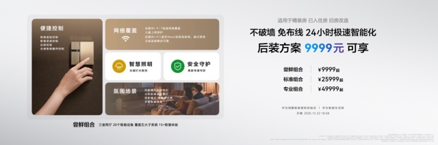 后装套餐同样提供三档灵活选择:【尝鲜组合9999起,标准组合25999起,专业组合49999起】,9999元起的亲民门槛、24小时快速改造、全程免布线不破墙的服务,彻底破解了已入住家庭“怕花钱、怕麻烦、怕破坏装修”的三重焦虑。无论是老旧小区升级,还是已入住家庭补全智能体验,都能在不打乱生活节奏的前提下完成改造,与城市更新、旧居品质提升的政策方向高度契合。