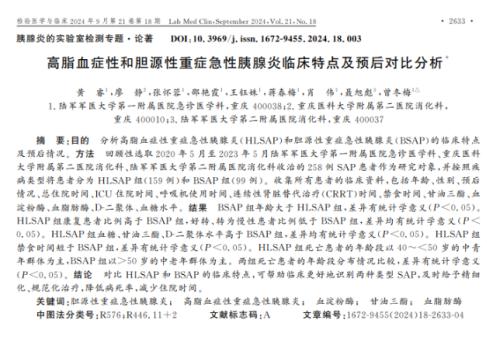 参考资料:黄睿.高脂血症性和胆源性重症急性胰腺炎临床特点及预后对比分析, 检验医学与临床 ,2024-09-26