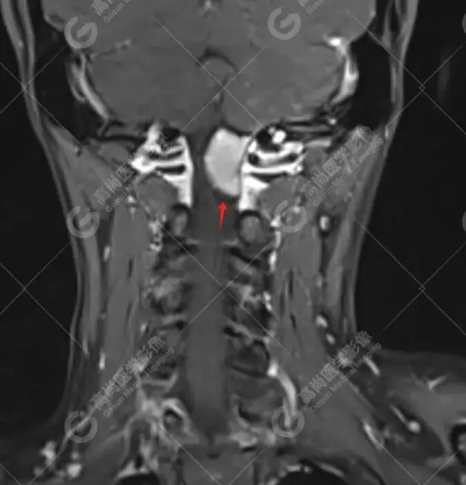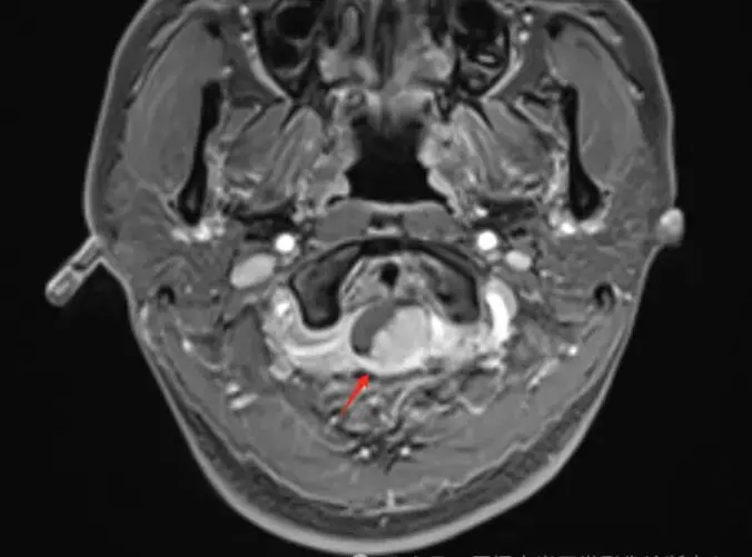 林女士,40岁,左侧头颈部疼痛1年,一直以为只是偏头痛,药物治疗,但效果甚微。后来到我中心做了头颅磁共振平扫;颈椎磁共振平扫+增强,终于发现症结所在。