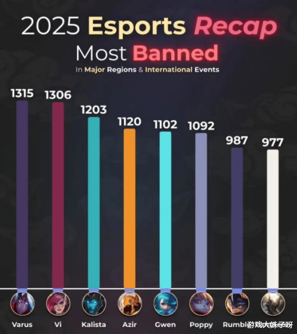 外媒统计,2025年赛场上英雄禁用次数排行,辅助无一人上榜