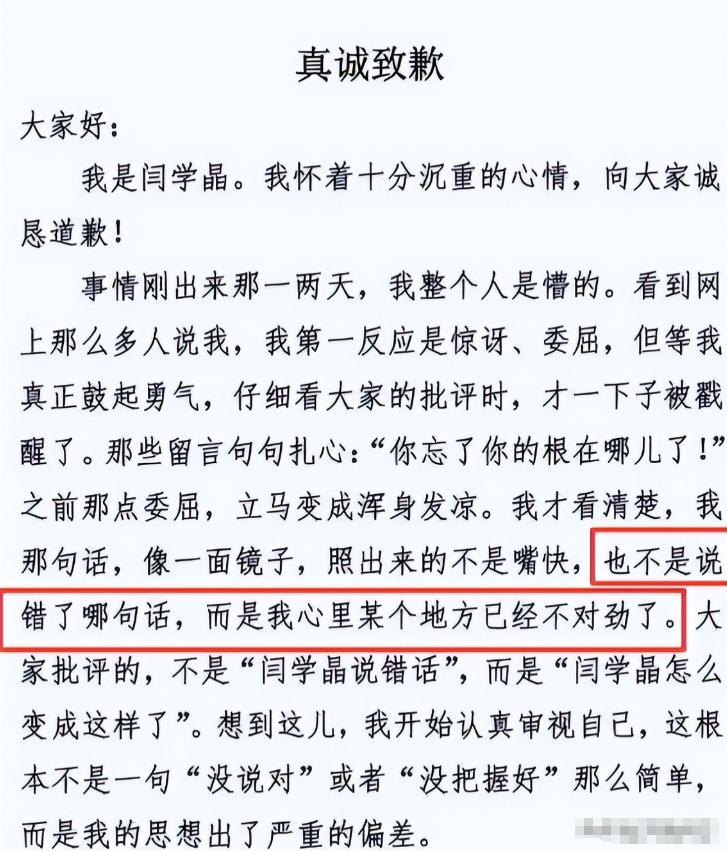 11日,闫学晶的道歉信并未能平息这场愈演愈烈的风暴,反而在某种程度上成了火上浇油。