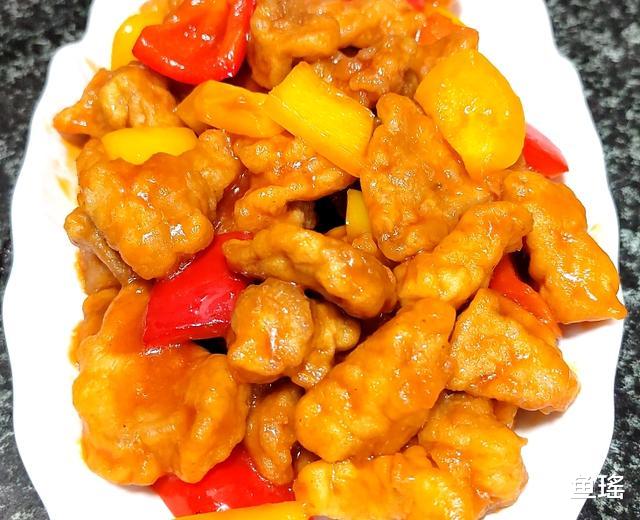 趁热装盘,最好选白色浅盘,红、黄、绿、粉堆成一座“彩虹小山”,表面酱汁还在“噗噗”冒泡,自带背景乐。第一筷瞄准里脊,外壳“咔嚓”一声碎成渣,脆壳厚度刚好0.2cm,牙齿穿过时像踩碎薄冰,紧接着嫩肉“噗”地弹牙,肉汁混着酸甜汁一起溅出来,舌尖先感到番茄的鲜,再感到白醋的爽,最后留下白糖的尾韵,像坐了一趟“云霄飞车”。第二筷夹菠萝,热酱汁把果香放大十倍,一口咬下,纤维里爆出冰凉的罐头痛感,酸甜度瞬间清零口腔油腻,比薄荷糖还管用。彩椒和洋葱保持“生脆”,在齿间“咔咔”打节拍,整口味道从软到脆、从热到凉、从酸到甜,循环播放,筷子根本停不下来。