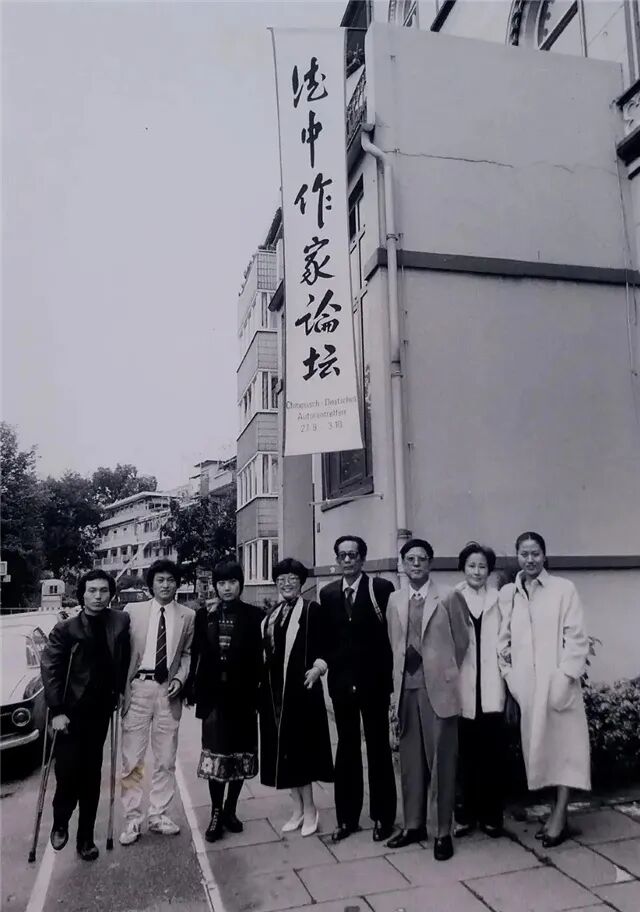 (图三、左起:马德升、金弢、刘索拉、程乃姗、鲁彦周、邓友梅、张洁、王安忆,1988年9月德中作家论坛在汉堡)