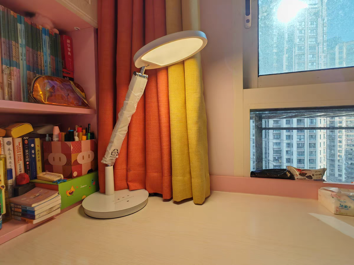 技术上,这款台灯采用了紫光灯珠。它的照度、显色和防蓝光能力均很优秀,远超同行。台灯还搭载了环境光感器,能自动调节光线,以此保证桌面光线不变。