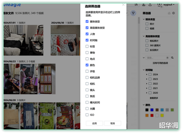 ▼QuMagie 的页面右上角提供了丰富的筛选器选项。用户可以根据人物、日期、标签、事物、地点乃至拍摄参数等多种维度,快速精准地找到所需照片。