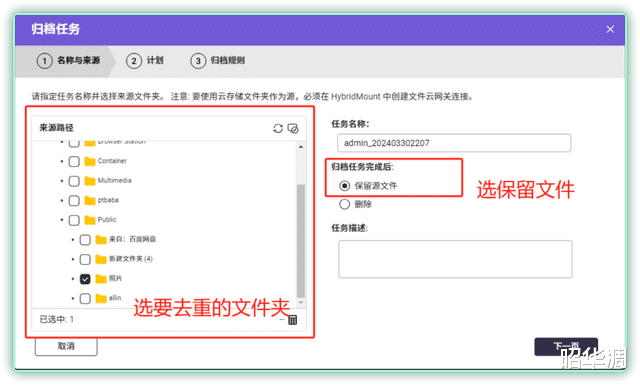 目标文件处理则可以指定原始图片在归档后删除还是保留