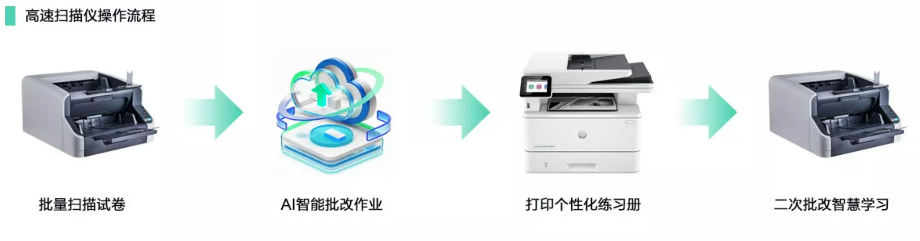 采用高速扫描仪上传作业时,老师仅需统一搜集学生试卷并完成扫描上传,后续的批改工作全由 AI 自动完成,家长可自主打印批改留痕。这种模式批改速度极快,大幅减少人工干预,同样无需消耗耗材,让老师从 “收卷 - 批改 - 发卷” 的繁琐流程中彻底解脱。