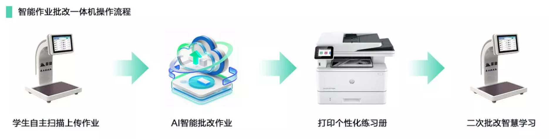 通过作业批改一体机扫描上传作业后,系统自动完成智能批改,家长可引导学生自主进行留痕打印。整个流程无需老师额外介入,学生就能轻松完成作业提交、批改结果查看与打印,不仅培养了学生的自主学习能力,更无需消耗学校任何耗材成本,设备维护也简单快捷。