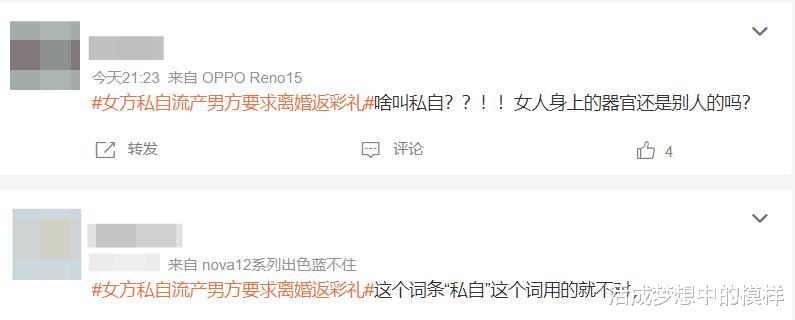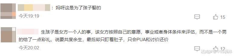 这话我本来是赞同的,但结合她们是反对法院判决女方返还部分彩礼才说这话的行为,我就觉得十分别扭了。讨论彩礼合理性的时候,动不动生孩子警告的是你们,动不动说彩礼是生育保障的是你们,现在你跟我谈生育自由?