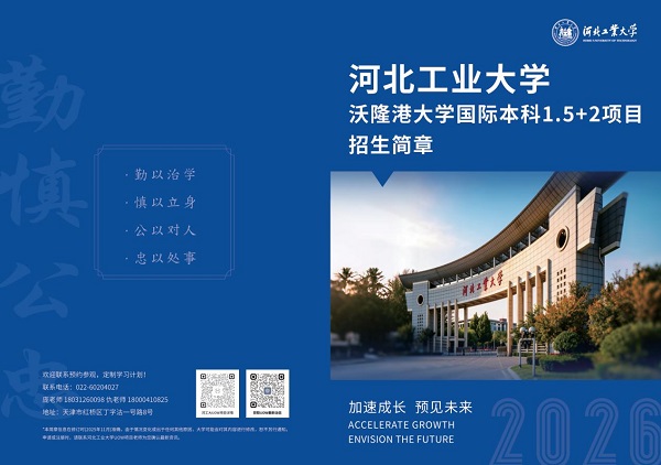 目前,该项目2026年春季招生工作已全面启动,考生可通过关注河北工业大学官方账号获取最新的招生资讯,也可以直接联系招生办公室(022-60204027)预约校园参观,获得圆梦世界名校,实现国际化升学的宝贵机会。