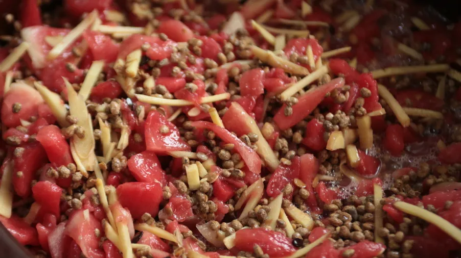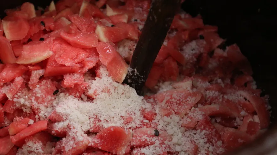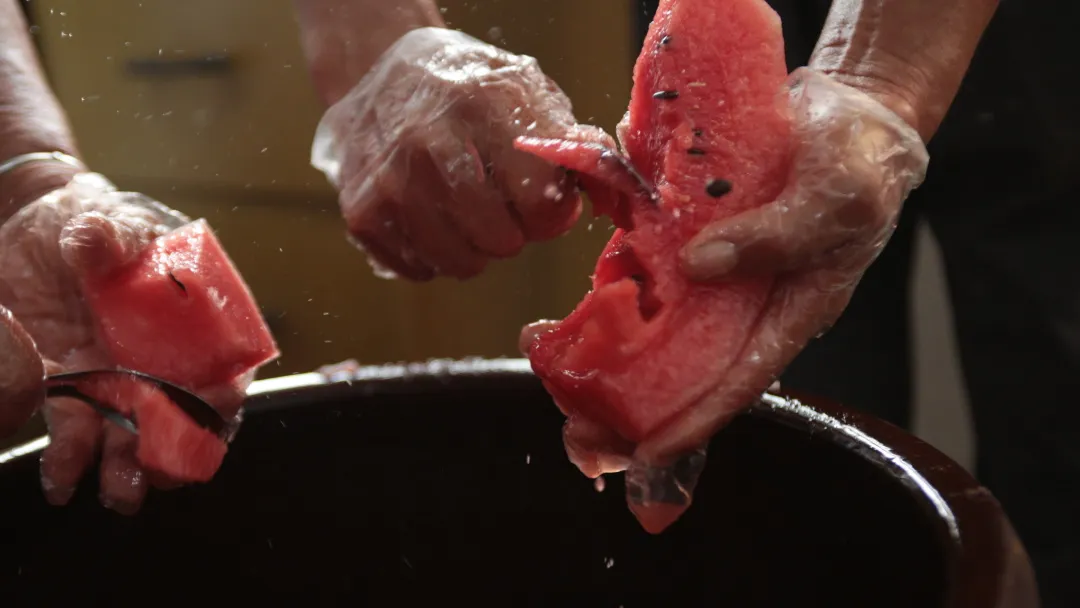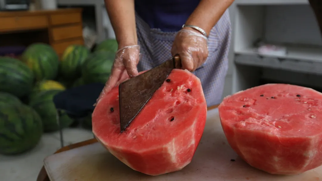 西瓜和豆豉的组合,对于南方人而言,几乎很难想象。可在辛集,它是陪伴了一代代人的美味酱菜。尤其在物资匮乏的年代,夏天的蔬果难以长久储存,人们便摸索出用西瓜制作豆豉酱的方法,成就了一道西瓜豆豉的美味。