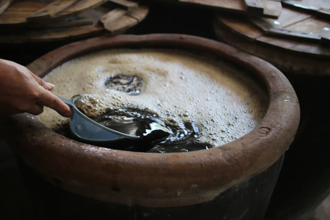 在辛集,还有用馒头做成的黑酱,这也是三庆居古法制酱的技艺之一。夏天是制作黑酱的最佳时间。将白馒头掰碎,放于温度与湿度适宜的环境发酵,除了馒头和水以外,不含任何添加剂。听老一辈人说,以前买不起酱油,家家户户做黑酱。除了直接抹在馒头上,用黑酱煮面亦是美味无比,醇厚的酱香融化在面汤中,一口面,一口汤,直叫人欲罢不能。