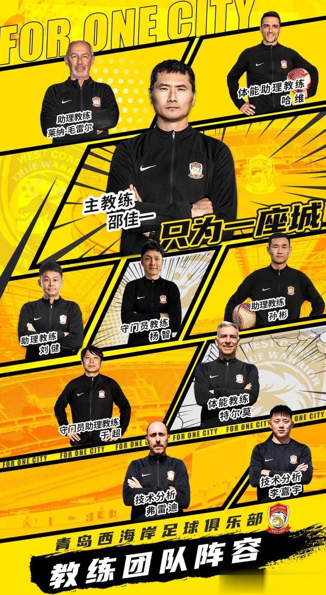 二、深耕西海岸:不止保级,更是体系的搭建2025 年年初,青岛西海岸公布新赛季教练组阵容时,邵佳一的名字前不再有 “救火” 二字 —— 他成了球队稳定的掌舵人,教练组里除了毛雷尔,还多了前国脚刘健、杨智,形成了 “中西结合” 的团队。这个赛季,他不再只盯着保级,而是开始打造属于自己的战术体系。