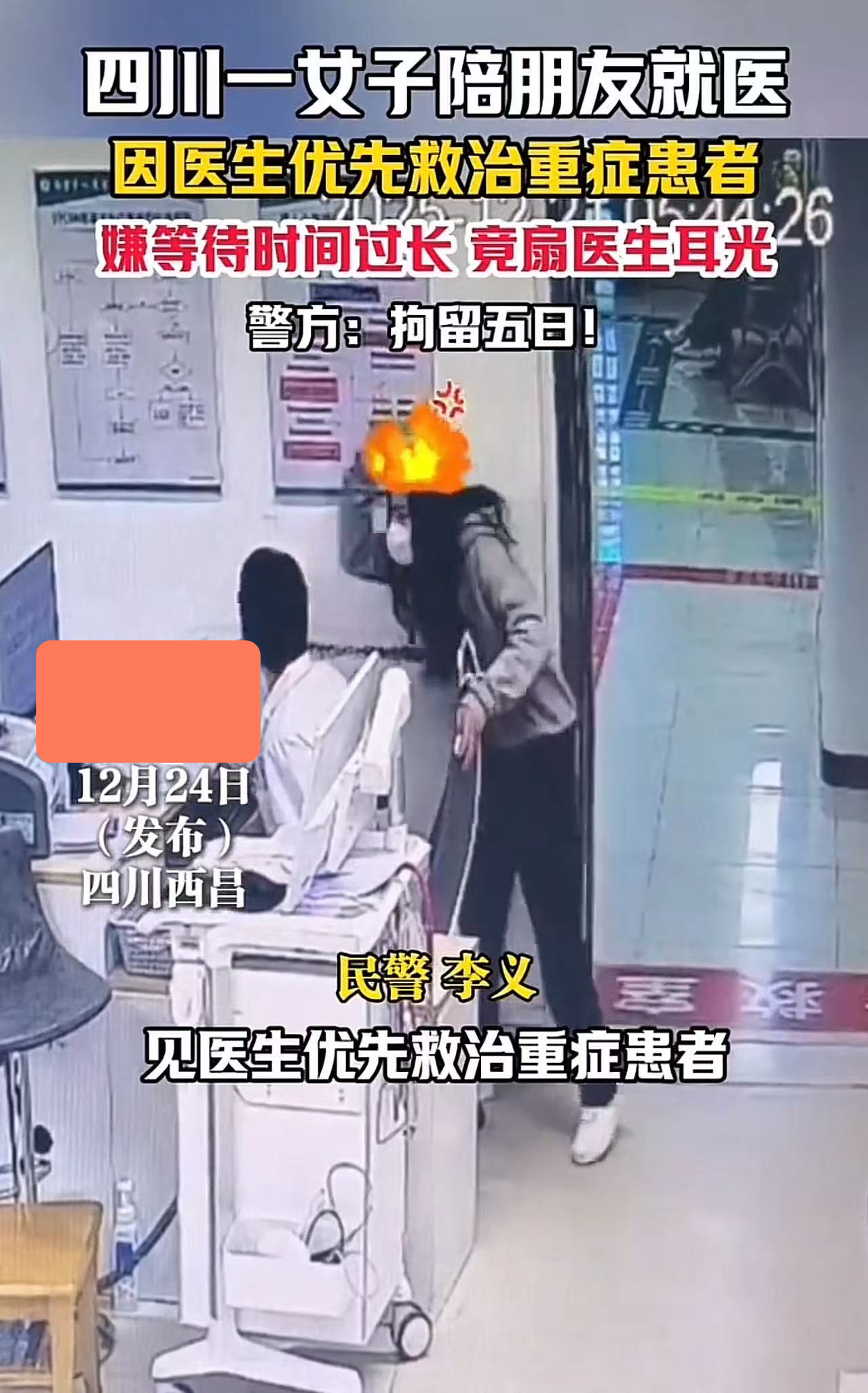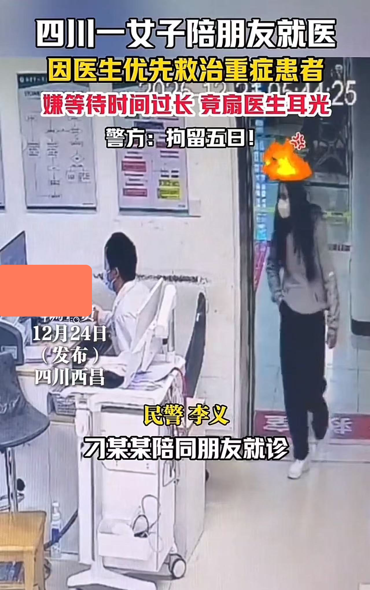 2025年12月21日,在四川西昌,一位女子陪朋友看病的视频监控画面火了。