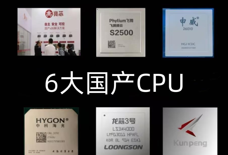 在CPU领域,涌现了龙芯、海光、申威、鲲鹏等六大品牌。