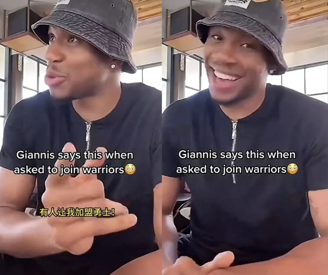 先说下,过去几年字母哥每次有交易流言出现,勇士都会成为有意者之一,甚至,字母哥自己面对这些流言的态度也非常暧昧——今年休赛期,字母哥的一次直播当中,有球迷晒出一张他加盟勇士与库里、巴特勒的图片,字母哥一边摇头晃脑一边笑呵呵,试问这画面,哪个勇士球迷看了不想入非非?