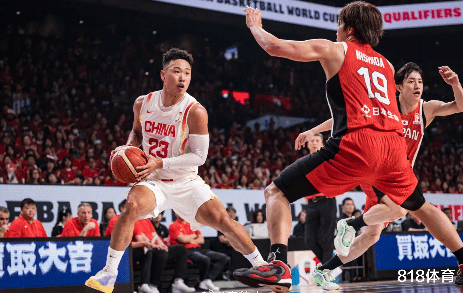 由于中国男篮投不进空位三分(上半场三分球11中2),日本男篮疯狂收缩,中国男篮的阵地战进攻一塌糊涂。