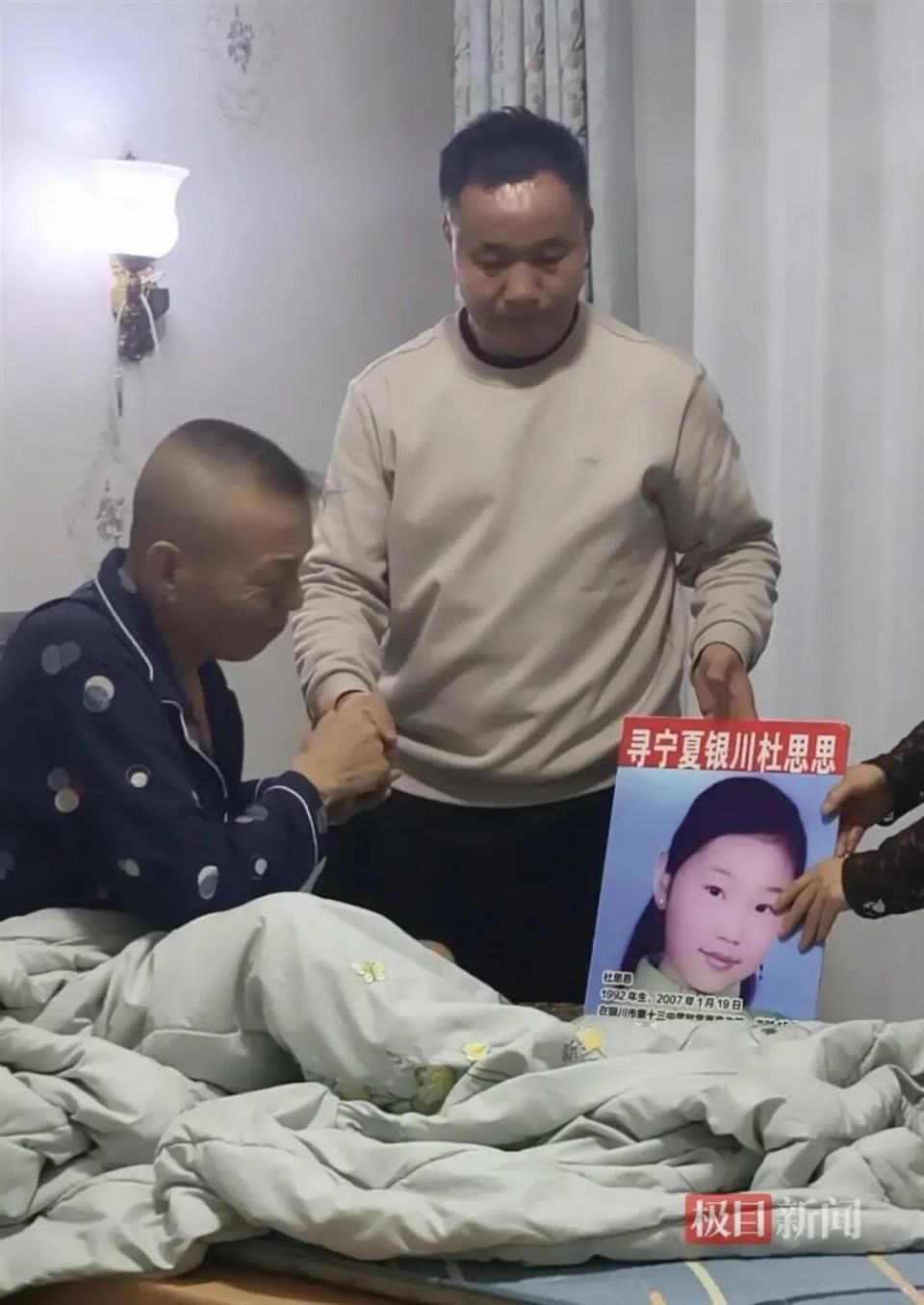 12月30日,“寻女18年男子癌症晚期托付杜小华”话题冲上热搜,引发全网揪心关注。电影《亲爱的》原型之一、寻子多年的杜小华,在内蒙古包头处理儿子小米奇走失案相关事宜后,于12月27日紧急赶往宁夏银川,探望相识14年的寻亲好友——悬赏10万元寻女18年的杜金龙。此时的杜金龙已身患直肠癌晚期,生命进入倒计时,病榻前,他以下跪托付的方式,将寻找女儿杜思思的最后期盼交给了杜小华。