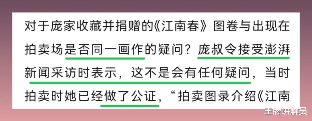 不可能。因为庞家后人多次向媒体表示,庞家捐赠的《江南春图》就是拍卖预展上的《江南春图》,此事已经做了公证。
