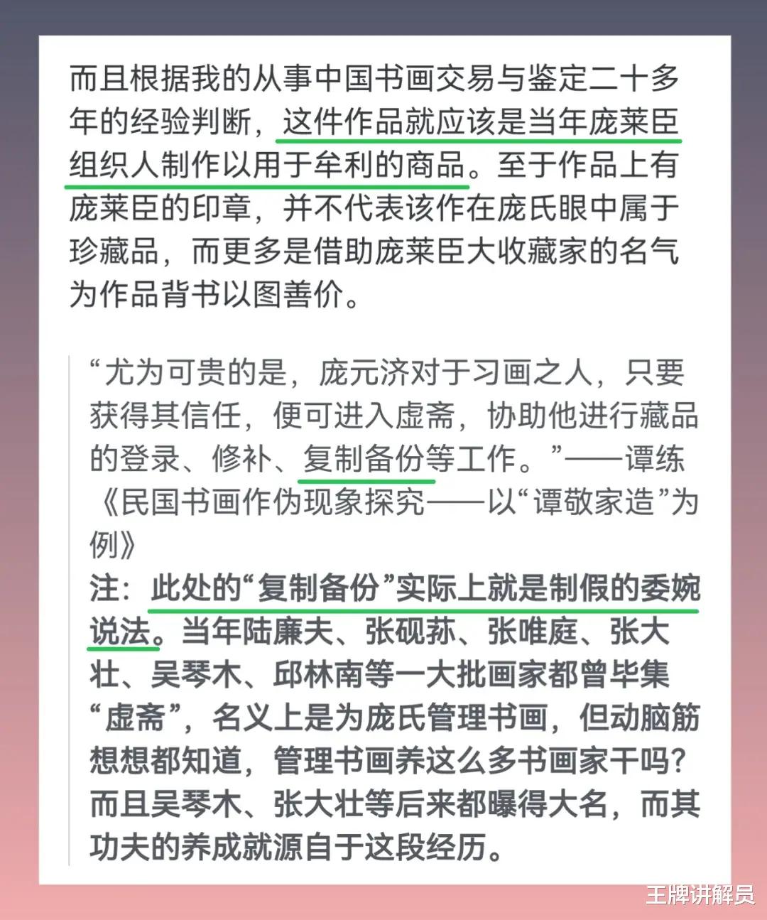 网友“祥和居主人”看到另一件由庞家捐赠、从南博流入拍卖市场的画作《双马图》,认为画得很差,猜测是庞莱臣组织制作的“商品”。据称,优秀画家得到庞莱臣的信任后,可以进入庞老的书斋,协助其“复制备份”画作。