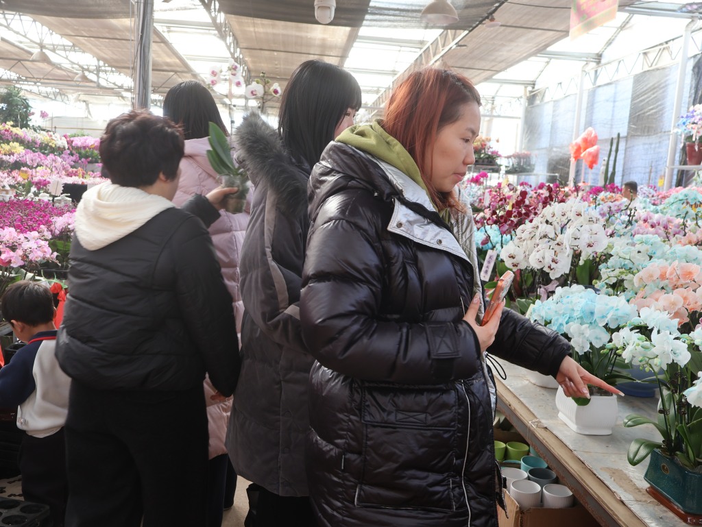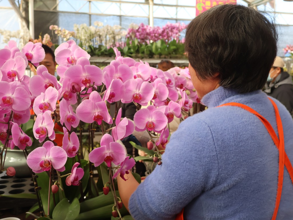 摊位前,有市民拿出手机拍下美照,有市民正仔细挑选心仪的盆栽。“一进来就感觉到年味了,花团锦簇赏心悦目,蝴蝶兰品种很多,颜色都不一样,非常讨人喜欢。过年来买上几盆,有这个新年的氛围。”市民杨女士说道,蝴蝶兰花期长造型美观,她特地和家人来挑选几盆蝴蝶兰,按照心意搭配,在家里摆放观赏。