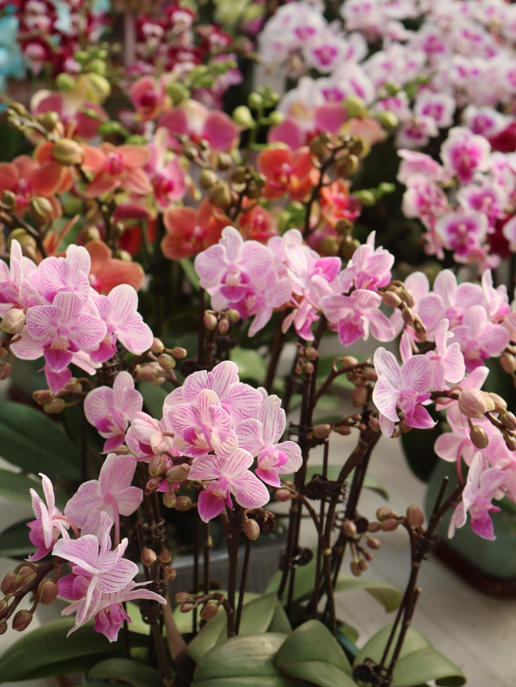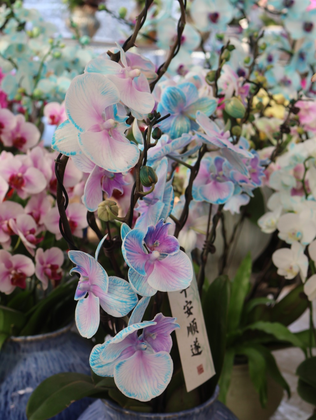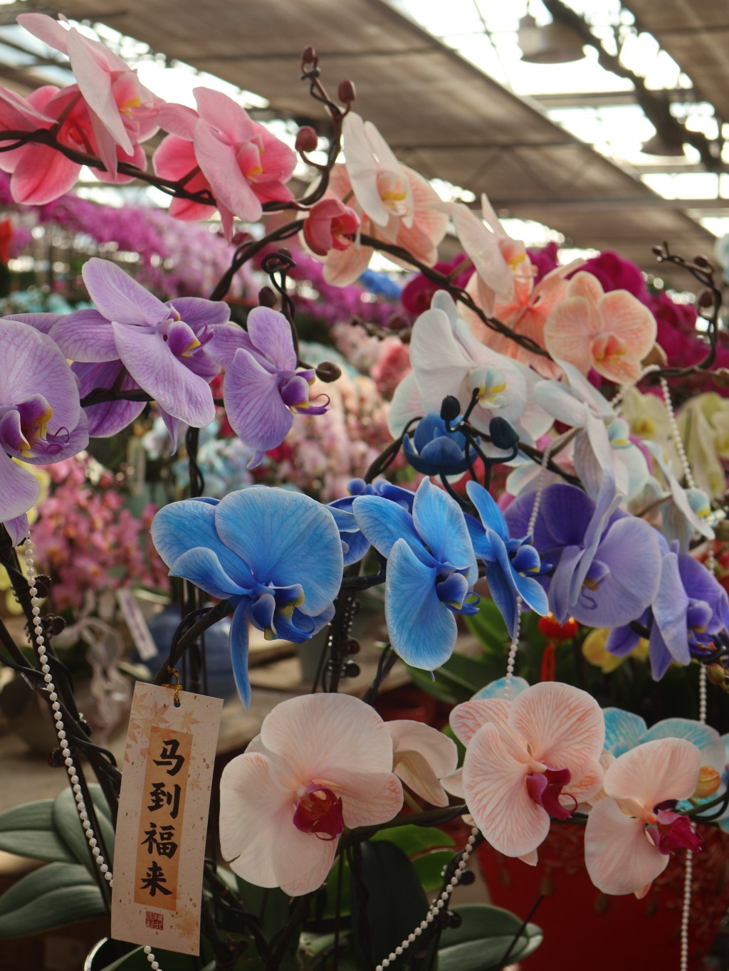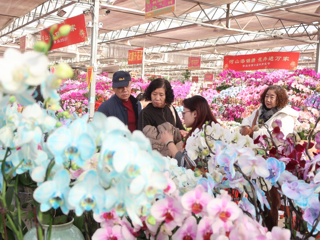 随着2026年新春的临近,年宵花市场热闹了起来。1月22日中午,记者来到青岛枯桃花卉交易中心,市场内暖意融融,形态各异、色彩缤纷的蝴蝶兰无疑占据了“C位”。置身市场,仿佛漫步于花海,大片大片的蝴蝶兰舒展着优雅的花枝,从经典的紫红色、粉色、白色,到蓝色、紫色、马卡龙色系,各式各样的品种搭配着瓷花盆,显得格外喜庆。