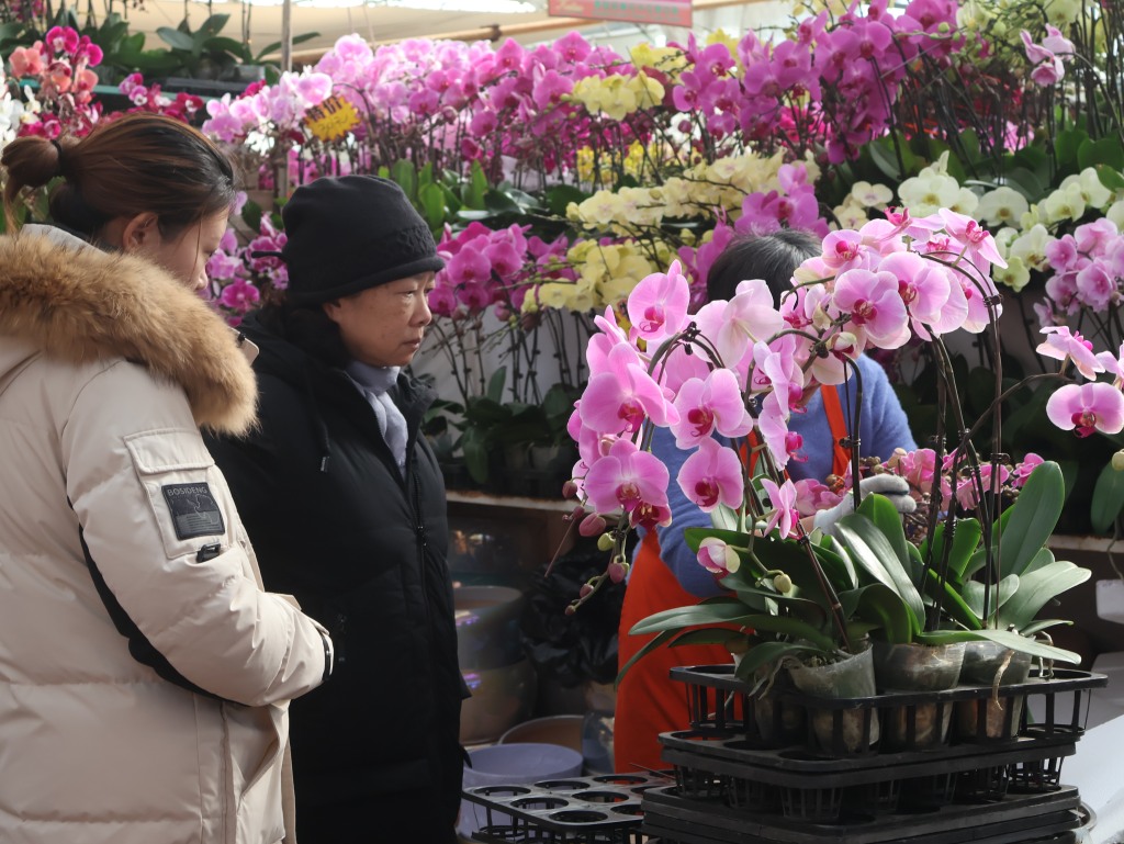 “上新的蝴蝶兰以马卡龙为主,有马卡龙粉色、马卡龙蓝色等,今年还增加了新的组盆造型。现在市民已经开始陆续选购了。”腾升园艺的工作人员介绍,“有消费者喜欢小巧精致的,有喜欢组盆造型的,这边选择多样化。既可以买成品,也可以挑选自由搭配。”记者注意到,蝴蝶兰按品种不同,单株一般在20到50元之间,造型精美的组合盆栽则几百元不等,满足市民的不同消费需求。除了蝴蝶兰,仙客来、长寿花、冬青果等有着美好寓意的年花也吸引了不少市民驻足。