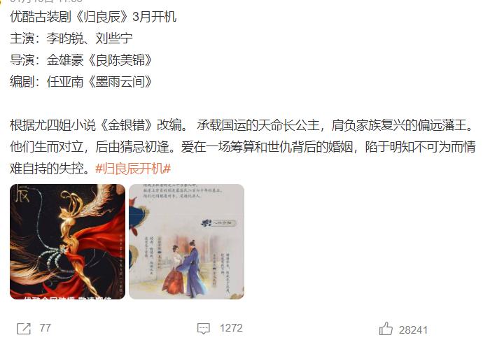 各位读者,看到网传的消息后,你们期待《归良辰》吗?不得不说,李昀锐太适合古装剧了。