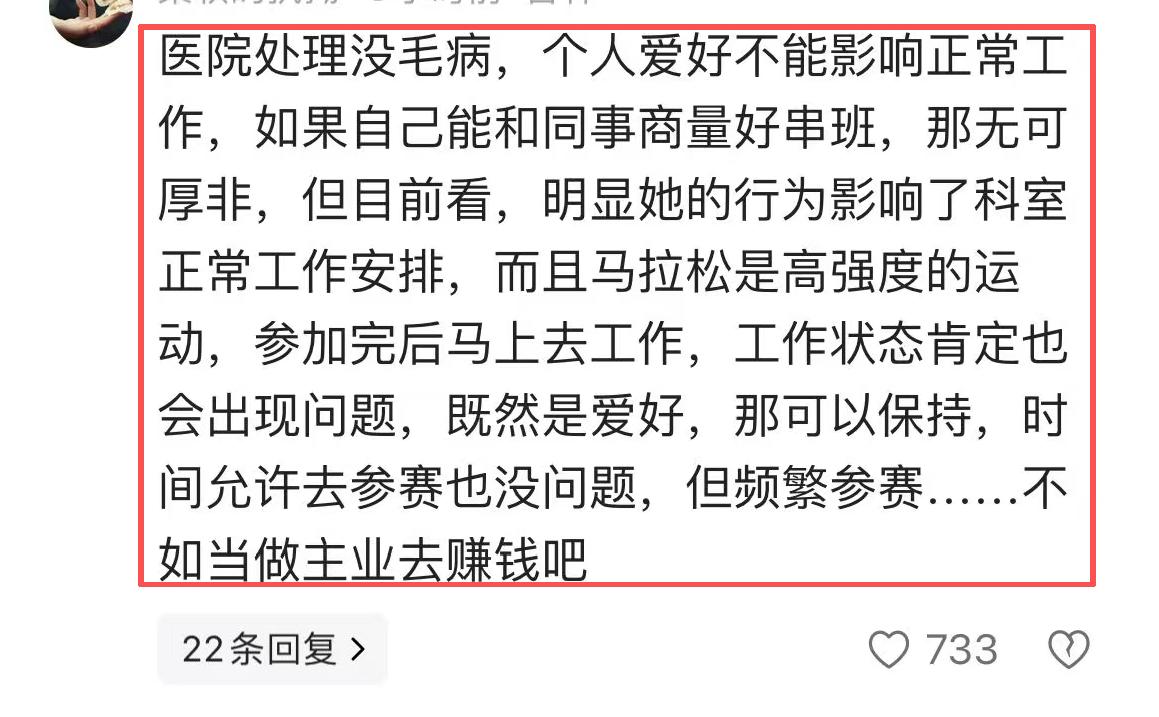 她跑马拉松确实有能力,但她分不清主次,这次单位的处罚,也是划清了工作底线和个人自由的边界。