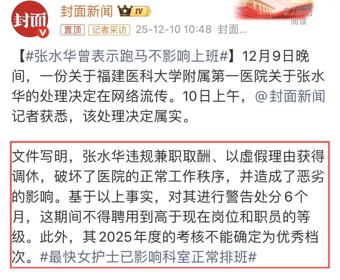 张某华受到处罚,不是因为跑马拉松,而是她违规调休,为了挣钱过度参加比赛,严重影响到了工作。