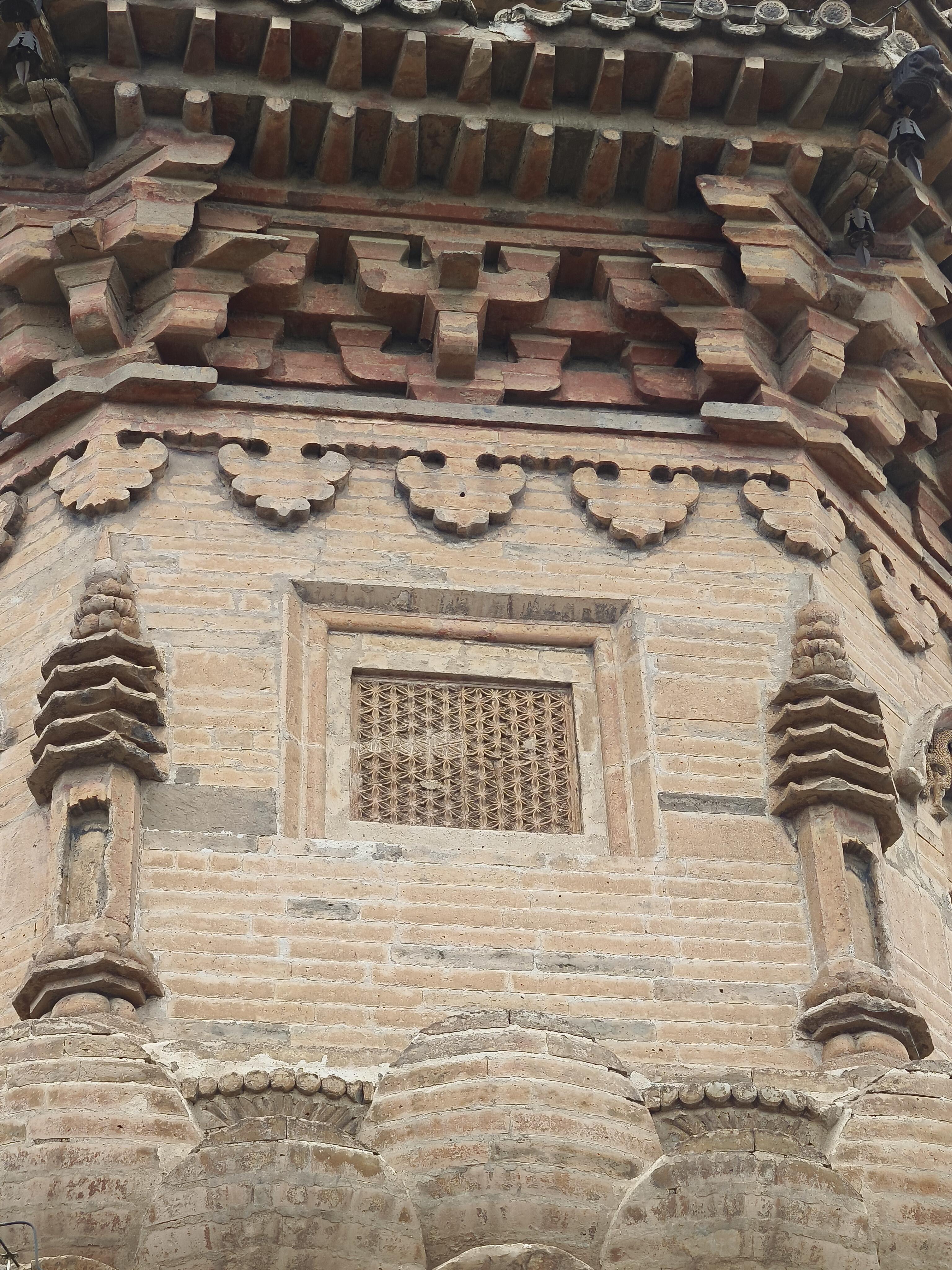 清康熙四十五年的那次重修,更是把"混搭"做到了极致。负责修缮的官员大概是个江南迷,硬是在辽代风格的塔檐上加盖了琉璃瓦当,那些刻着缠枝莲纹的瓦当,在北方的风沙里闪着南方园林才有的珠光宝气。更让人摸不着头脑的是塔内的壁画,底层还留着北魏时期"秀骨清像"的飞天,往上几层却突然冒出清代年画风格的门神,红脸的尉迟恭瞪着眼睛,手里的长矛却画得跟辽代的铁枪一个模样。有专家说这是工匠偷工减料,照着旧图纸瞎画;也有人觉得这是故意为之,就想让后人看看不同时代的信仰是怎么挤在一块儿的。去年有个游客在塔下拍了张照片,夕阳把塔影拉得老长,正好和远处明代城墙的垛口重叠,评论区立刻吵翻了天,有人说这是"历史的拥抱",有人骂这是"不伦不类的拼凑",吵到最后居然有人翻出民国时期的老报纸,发现八十多年前,当地乡绅就为了要不要给塔装避雷针吵过架,赞成的说是"用洋法护古物",反对的骂是"给佛祖戳脊梁骨"。