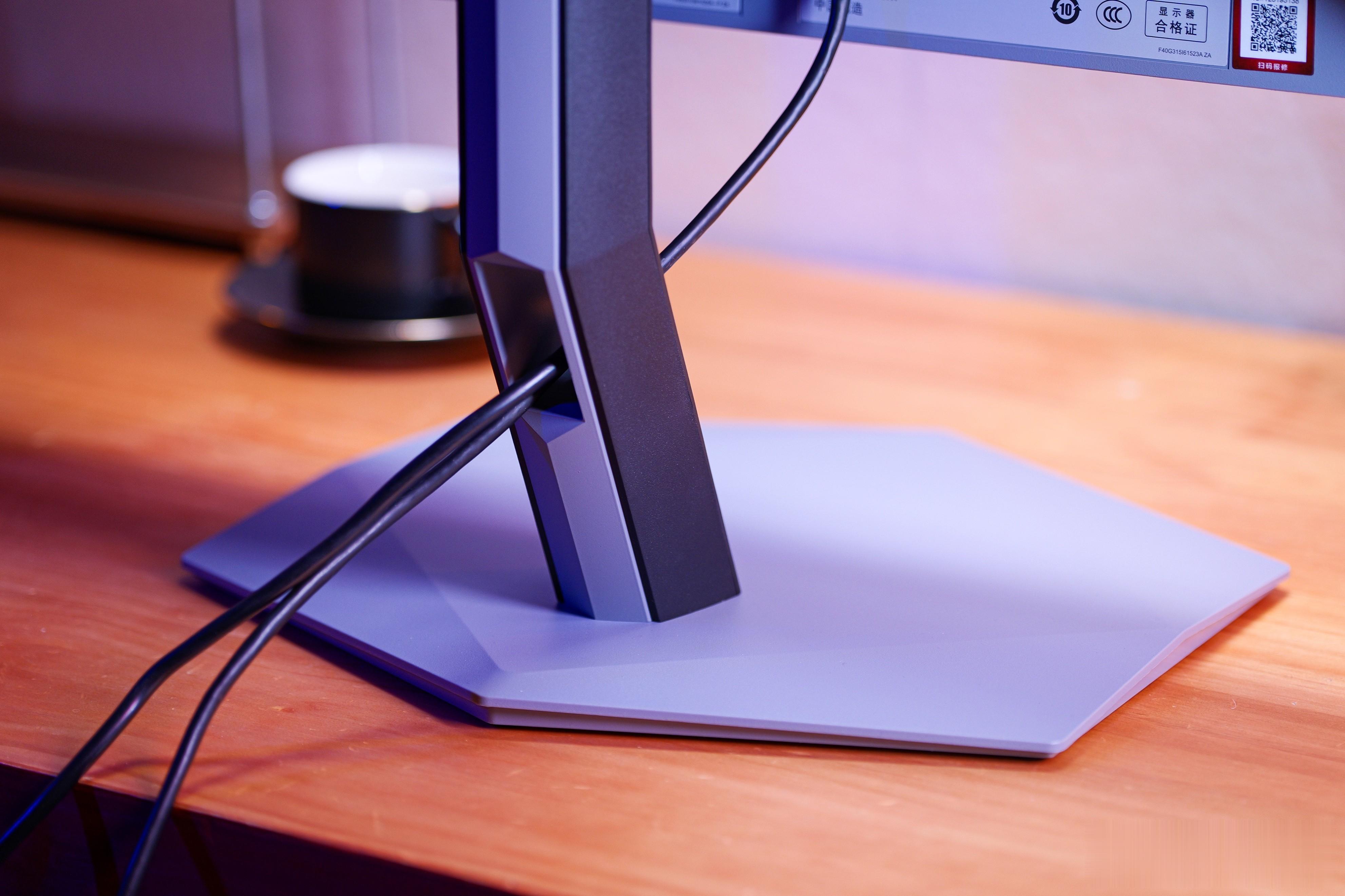 配备多功能人体工学支架,支持升降、旋转、俯仰及垂直旋转全维度调节,可根据使用习惯灵活调整屏幕角度,适配不同坐姿与使用场景。同时采用快拆结构搭配多边形底座,安装过程简便快捷,且多边形底座能有效节省桌面空间,让桌面布局更整洁高效,完美适配各类电竞桌面空间需求。
