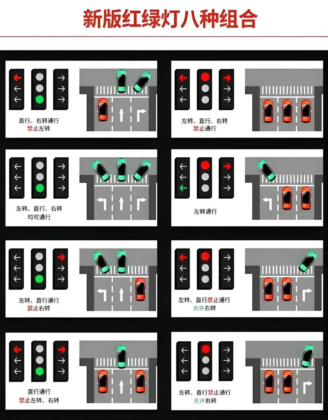 右转车辆: 在红灯亮时,在不妨碍被放行的车辆、行人通行的情况下,可以通行。(除非有“红灯禁止右转”的标志牌)