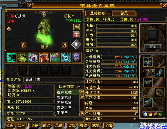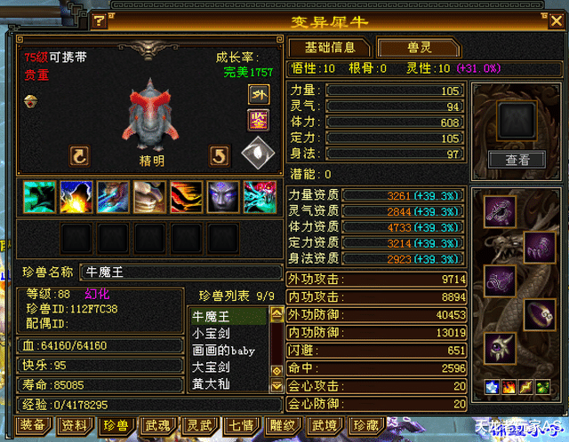 他虽然装备和宝石不是最顶尖的,但是在75级宝宝这一块上,是当之无愧的“王”!今天小编带大家一起看看兽灵出之后,这位圣兽山王的75顶级宝宝都更新成啥样了:
