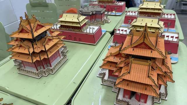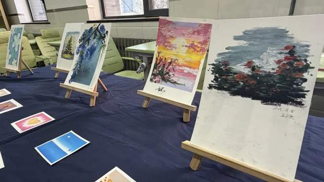 在美术类展区,重彩油画棒社团作品色彩明丽,国画小品笔墨淡雅,水彩DIY和织梦坊社团的创作则展现了同学们的巧思与耐心。数字图文创意工坊的成员通过PPT展示了本学期学到的多媒体技能;探秘北京中轴线社团则通过亲手搭建的建筑模型,带领大家感受古都的历史脉络。