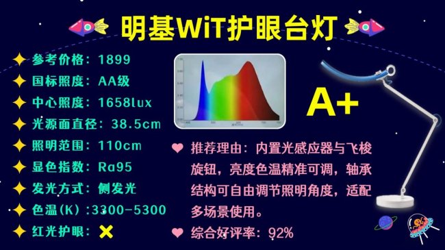 一句话推荐:显色指数Ra达到98,可以很好地还原书本上的颜色。