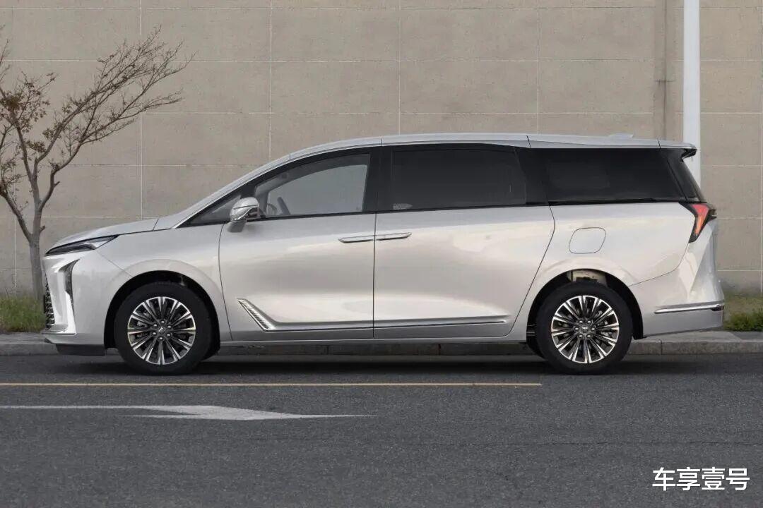 侧面全系都是这款18英寸双色轮毂,但是轮胎有点窄,仅225mm,外后视镜,全系标配加热、锁车自动折叠,中高配带有并线辅助,传统造型的门把手简单好用,全系标配无钥匙进入,中高配为双侧电动侧滑门。