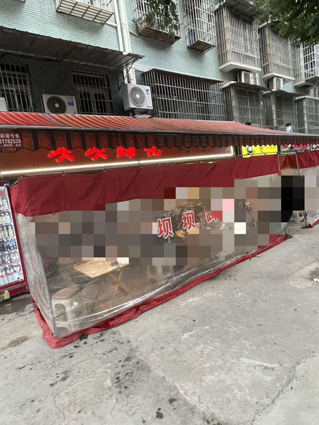 经核实,望鹤路一段127号“坝坝蹄花”餐饮店为了扩大经营规模,占用门前公共区域,违规搭建钢架结构、安装透明塑料挡风设施,摆放4张餐桌供顾客就餐。该占道经营行为不仅影响行人正常通行,还破坏了周边市容环境秩序,反映情况属实。