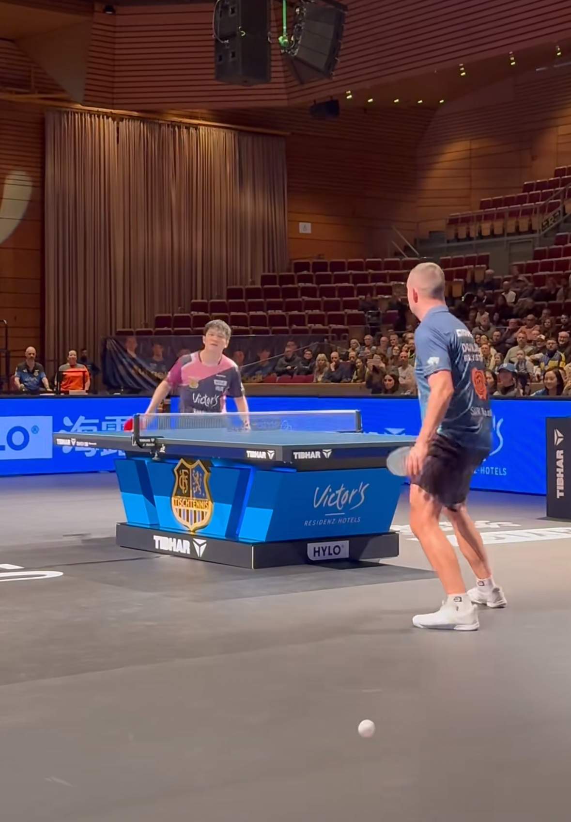 第一局,樊振东面对霍多尔斯基,对方技术粗糙,比较喜欢大回合,打法也是非常怪异,樊振东没有给对方展示的空间,很快就11-1拿下第一局的胜利,赢得非常轻松。