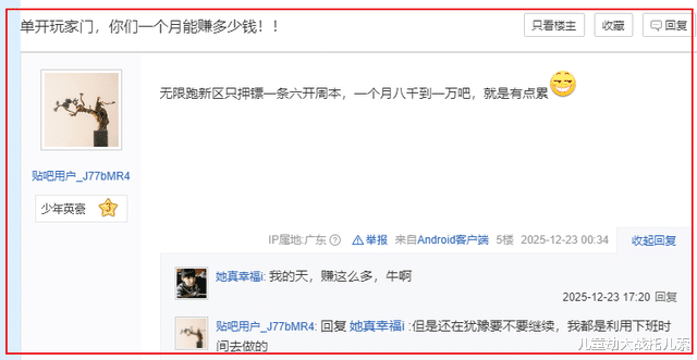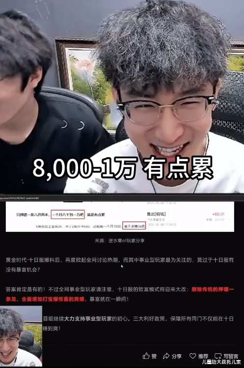 而评论区的水友们则是对他的犹豫感到不理解:“我一个月工作才赚4000多块,你兼职能赚1万还不干?”、“游戏搬砖没有门槛,我现在已经专职搬砖了”、“真的累不如少开几个号,现在大环境就是要多赚钱”……