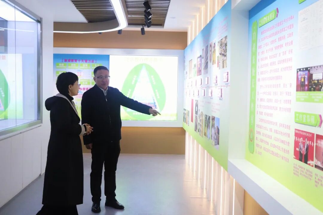 冯校长一行还参观了以科技为主题的楼道文化,浓厚的科创氛围与精巧的育人设计相得益彰。随后,来宾们实地感受了奋进钟表、追梦人、情深石等富有寓意的文化景观,每一处细节都彰显着学校“以文化人”的教育情怀。在学生自我教育的诚信厅与成长墙前,大家驻足交流,对学校在德育浸润、价值引领上的创新做法给予高度评价。参观期间,来宾们还现场观摩了激情跑操、课前励志等特色活动,学生们昂扬的精神风貌与井然有序的集体表现,赢得了一致赞许。