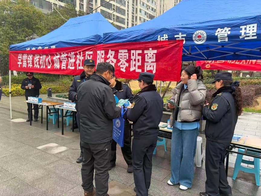 3月5日,在第63个“学雷锋纪念日”到来之际,市城管局综合行政执法大队党支部组织党员干部组建平安志愿服务队,深入社区广场开展学雷锋主题志愿服务活动。平安志愿者们身着城管蓝、身披志愿红,以暖心务实的行动传递城市温度,擦亮城市文明底色。