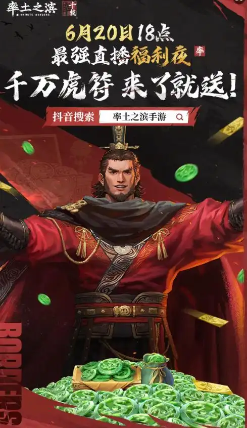 就在今天18点(6月20日),《率土之滨》在官方在抖音直播间搞了一场超豪横的最强直播福利夜,直播送出2000万虎符福利,玩家见者有份。