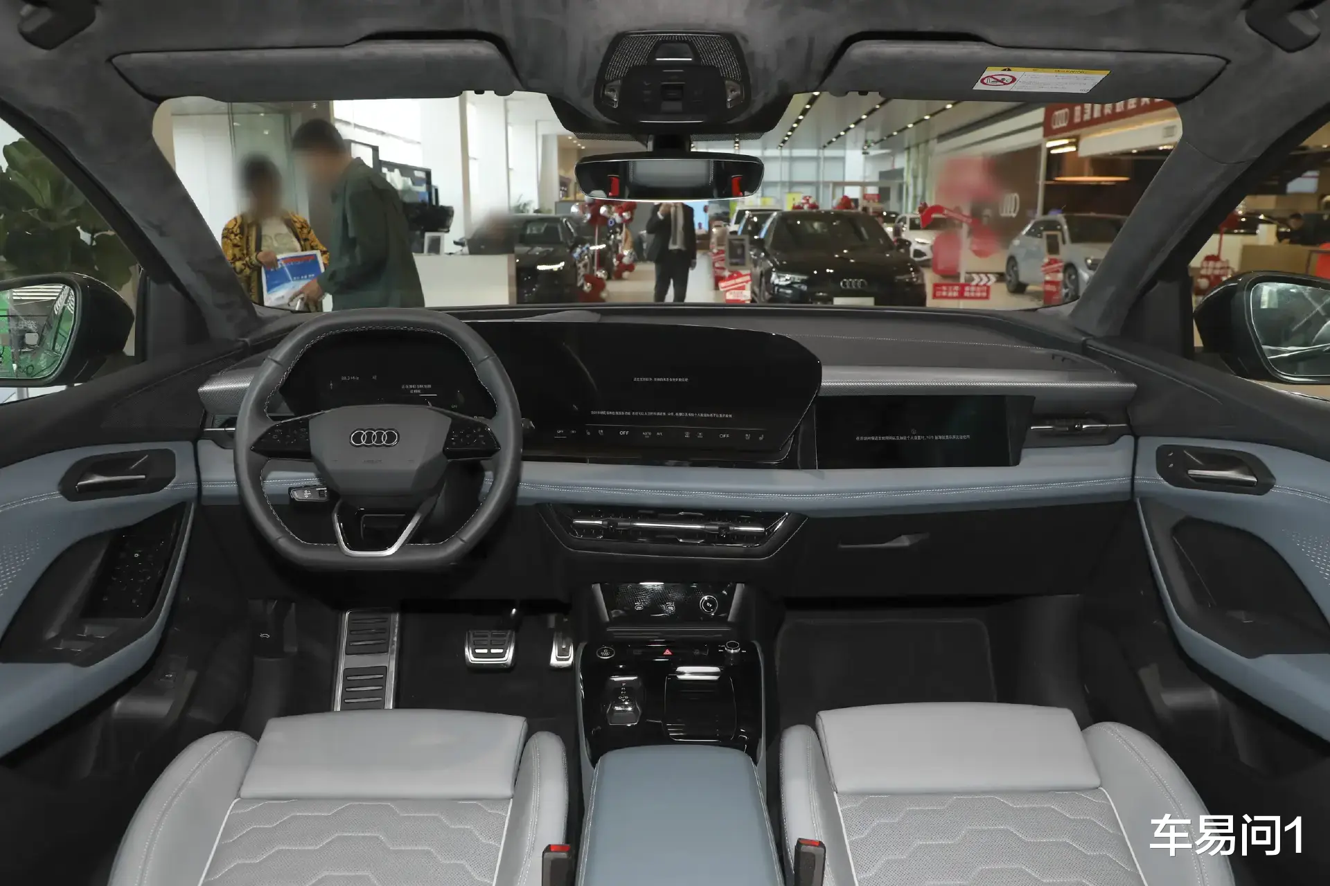 比起外观上的不同,奥迪Q6L e-tron的内饰几乎是新一代奥迪Q5L的复刻版。中控台采用了11.9+14.5英寸曲面OLED屏,并在副驾一侧布局10.9英寸智能防窥娱乐屏;同时,在D型方向盘前也可以获得HUD抬头显示。不过,奥迪Q6L e-tron是更高级的AR-HUD版本,并将提供88英寸投影来展示更多多媒体、智能驾驶辅助等信息。此外,烤漆材料装饰的车门窗控制也像奥迪Q5L一样采用数字化面板设计,包括座椅记忆、温度控制等操作也会在车门面板中完成,只是副仪表台处的物理按键与旋钮会略有差异。