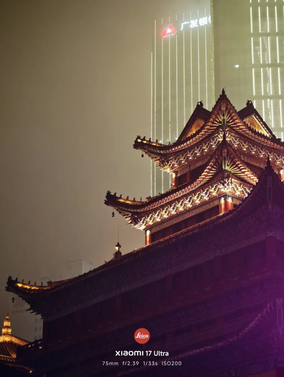 这套光学系统与LOFIC传感器形成的“超净捕获”组合,确保进入传感器的每一缕光都纯净无瑕,为超高的满井容量提供最优质的信号源。这种从光路源头的全面净化,使得即使在极端复杂的光线环境下,小米17 Ultra也能保持纯净的画面质感,消除传统手机在夜景拍摄中常见的光晕、眩光和鬼影问题。