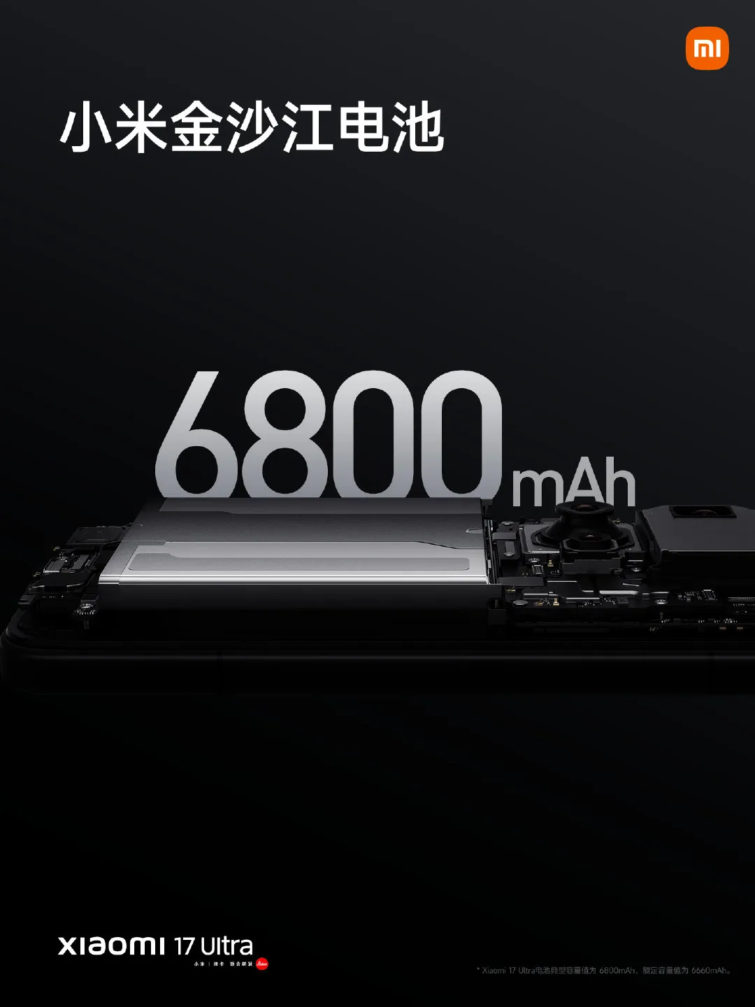 其次,在影像旗舰普遍牺牲电池容量以换取轻薄设计的今天,小米17 Ultra却几乎达到了影像旗舰的电池容量天花板。6800mAh的小米金沙江电池比小米15 Ultra提升不少,让这台史上最薄的Ultra机型依然拥有惊人的续航能力。这一成就的背后,是新一代球形硅负极材料的应用,带来行业领先的16%硅含量,能量密度高达882Wh/L。