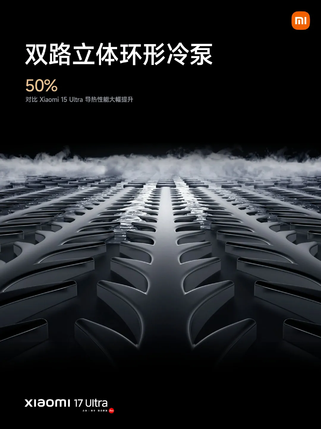 性能的极致释放,离不开高效的散热系统。小米17 Ultra继承Ultra系列的家族基因,搭载双路自驱环形冷泵散热系统,但这次进行了革命性升级——为相机模组增设一条独立的散热通路,实现处理器与相机模组的独立散热、互不干扰。这一设计确保了在长时间拍摄或录制高码率视频时,相机系统能够保持最佳工作温度,保障影像质量的一致性与稳定性。