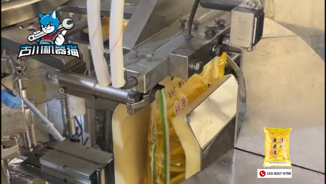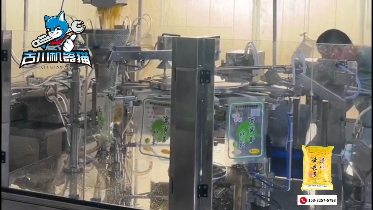 在清水蔬菜、即食配菜越来越火的当下,清水黄花菜这种“带汤、含水、形态不规则”的物料,对包装设备的要求其实非常苛刻:既要装得快,又要不漏汤、不夹料、不虚封。而古川清水黄花菜给袋式包装机,正是为这种“湿料+固形物”组合量身打造的专业解决方案。